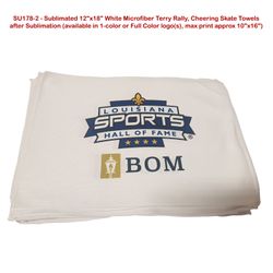 Get unlimited sponsors sublimated on the promo rally towel. Sublimation creates sharp images that won't fade or flake after washes. Usage: Hockey Games, Football Games, Corporate Events, Sporting Events, Event Rallies. Price includes full color sublimation print. Max Imprint: 10" x 16"L.
